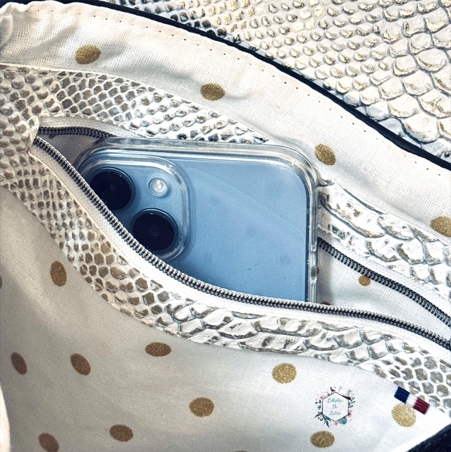 Un compartiment sous le rabat vous permettra de ranger vos affaires et une petite poche zippée intérieure de garder sous la main vos clés ou votre portable 🔑📱