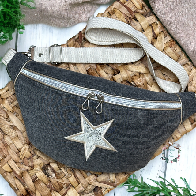 Matières : Jeans gris foncé, coton fleurs de lotus.